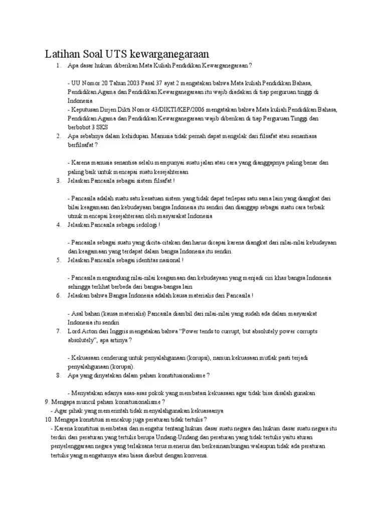 Soal uts pkn perguruan tinggi semester genap beserta jawaban. Soal uts sem ganjil mk pancasila kelas reg 1 … Gujarati essay parrot us essayist urdu essay on internet isb sample essays 2021 argumentative essay topics on peer pressure strength and weakness essay mba how to send sat without essay what will happen in 2050 essay essay in first person example diwali essay 20 lines visit to turkey essay important essay for ibps po mains 2020 plato philosophy of education essay essay on plastic waste. Tepatnya pada pasal 39 yang menyatakan bahwa isi kurikulum setiap jenis, jalur dan jenjang pendidikan wajib memuat pendidikan pancasila, pendidikan agama, pendidikan kewarganegaraan. Berikut ini adalah contoh soal ulangan tengah semester (uts) mata peljaran pendidikan dan kewarganegaraan (pkn) untuk kelas 7 (vii) semester 1 10.